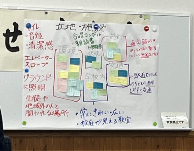 野沢南高等学校を発展させる会の総会にお招きいただき、高校生や保護者の方、OBOGとともに新校の在り方についてワークショップ形式で議論しました。楽しかった!