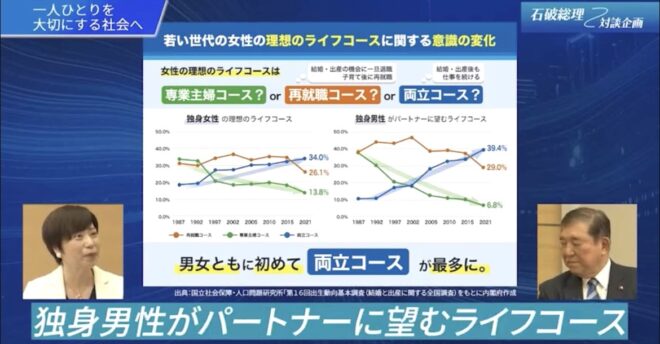 男性がパートナーに「専業主婦を希望する人」の割合は、この40年で40%弱から6.8%へと大幅に変化しました。前提として描いている社会像がことなることを理解しておくと、「ジェンダーギャップ」に対する意識醸成に繋がります。